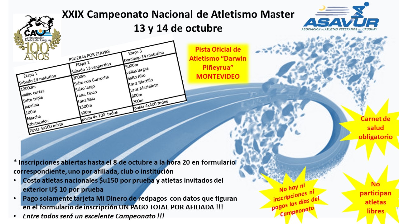 Iinvitación a campeonato Nacional Master Uruguay a realizarse los días 13 y 14 de Octubre en la ciudad de Montevideo.